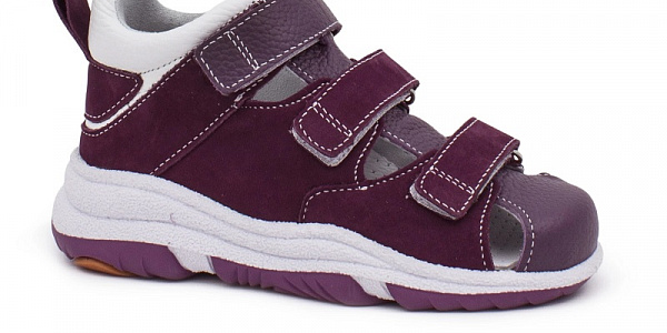 Сандали Orto-Care для девочек D-718-77/07KN сиреневые ORTO-CARE Назначение: плоскостопие Фиксация: на липучках Стелька: ортопедическая, съемная Высота каблука: 3 см Материал верха: натуральная кожа Материал подкладки: натуральная кожа Материал подошвы: термоэластопласт (ТЭП) Материал стельки: натуральная кожа, пенополиуретан Детские ортопедические сандалии - мягкая и комфортная модель фиксирующей обуви. Увеличенный жёсткий задник поддерживает голеностоп ребёнка и в сочетании с закрытым мысом предотвращает завал стопы. Каблук Томаса незаметно встроен в конструкцию подошвы из гибкого термоэластопласта: инновационное решение позволяет формировать правильный стереотип походки. Верх и подкладка выполнены из натуральной кожи с замшевыми вставками, что исключает натирание и возникновение мозолей при активной ходьбе. Съёмная ортопедическая стелька с кожаным перфорированным покрытием оказывает комплексное лечебно-профилактическое воздействие на детскую стопу. Быстрая и удобная фиксация изделия реализуется посредством трёх липучек Velcro по подъёму. Обувь рекомендована при детском плоскостопии, для коррекции и предупреждения деформационных процессов, для общего укрепления и поддержания отделов стопы ребёнка. Подбор размера Встаньте на лист бумаги и обведите контур стопы. На полученном контуре измерьте отрезок от самого длинного пальца до пятки. Это и есть длина стопы, указанная в таблице. 26: 16.5 см 27: 17 см 28: 17.5 см 29: 18.5 см 30: 19 см 31: 19.5 см 32: 20.5 см D-718-77/07KNkam /upload/iblock/1ea/1ea9d2583ea9c3772a60d3a969058e3c.jpg